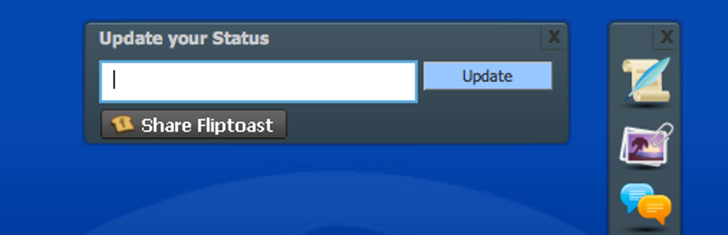 FlipToast consta de una barra lateral desde la que acceder a todas sus opciones rápidamente. Con un par de clics podrás comentar tu estado directamente desde el Escritorio.